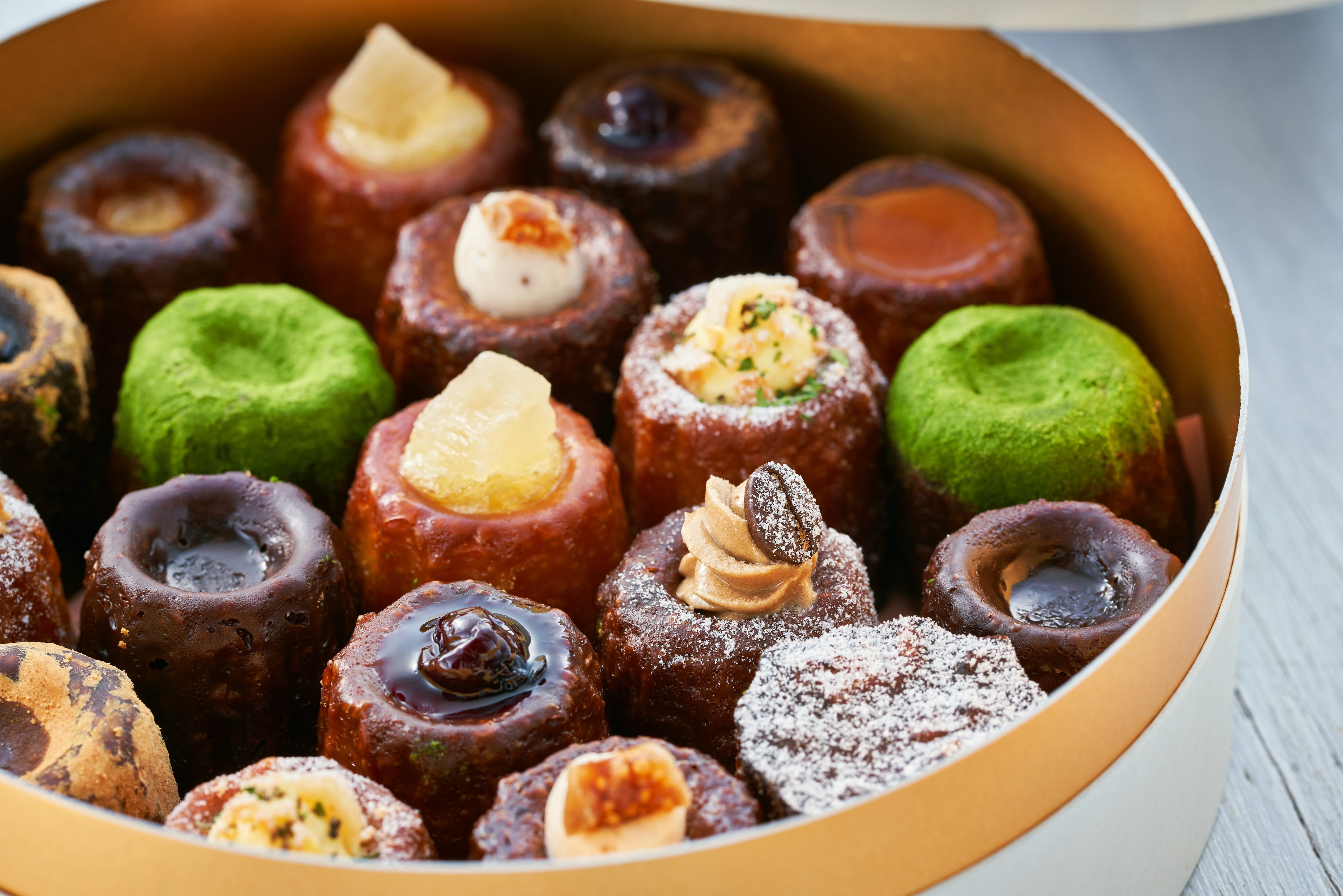 バニーユ/ショコラ/西尾の抹茶/黒蜜きな粉/キャラメル・サ・レ/ピスタチオ/黒ごま/黒糖とくるみ/バナーヌ/カフェ+季節のカヌレ2種 の計12種類